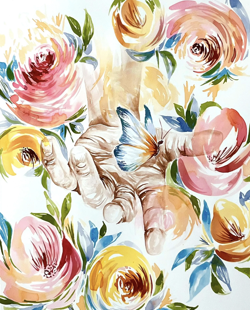 She was drawn to the hands and flowers in my paintings because they felt familiar.